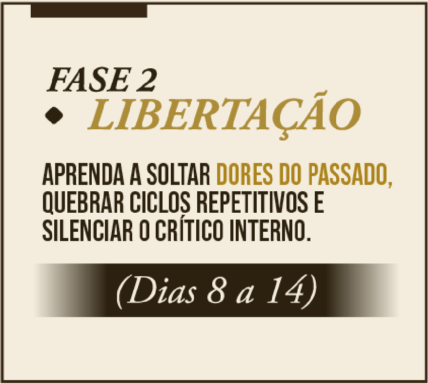 Em apenas 21 dias, você vai aprender a enxergar, soltar e reprogramar — criando uma nova versão de si mesma, mais livre e mais leve.